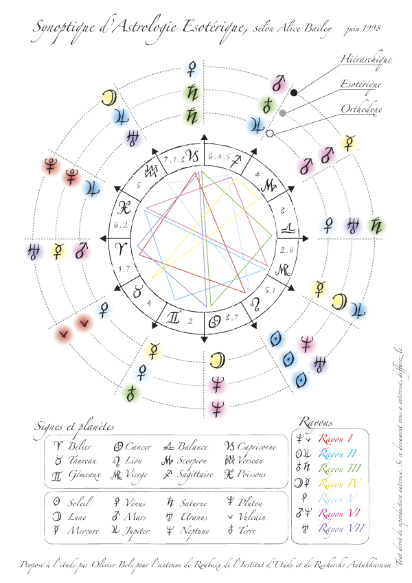 A.A. Bailey propose ainsi un système cosmique, un ordre universel, une véritable organisation « légiférée » et hiérarchique de l’univers, soumise au fonctionnement dynamique de SEPT courants d’Energies appelés SEPT RAYONS COSMIQUES, dont l’impact et l’assimilation dépendent de l’agent récepteur, qu’il s’agisse d’un atome, d’une cellule, d’un animal, d’un être humain ou d’une planète.